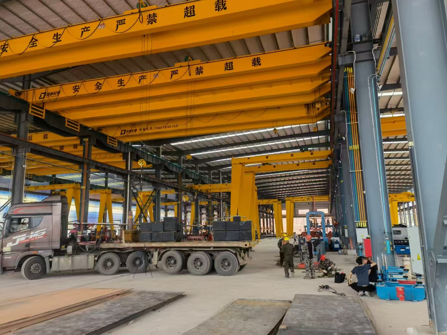 焙燒多功能天車主要有哪些用途?焙燒多功能天車主要安裝在炭素陽極焙燒車間,是作為焙燒爐生產(chǎn)與檢修用的多功能起重設(shè)備。它一般主要用來完成以下各項(xiàng)作業(yè)。 1、利用陽極夾具把鏈?zhǔn)捷斔蜋C(jī)上的生炭塊夾住,然后送往焙燒爐的爐坑,進(jìn)行裝爐作業(yè)。2、利用吸料管從焙燒爐坑內(nèi)吸取填充料,然后進(jìn)行粉塵分級作業(yè)。3、利用補(bǔ)充吸料管進(jìn)行煙道內(nèi)的清掃工作以及粉塵的定期排除作業(yè)。4、利用起重電葫蘆進(jìn)行焙燒爐的維護(hù)保養(yǎng)工作。 5、利用卸料管把料箱內(nèi)的填充料添加到焙燒爐的爐坑內(nèi)。6、利用陽極夾具把焙燒爐坑內(nèi)的熟塊夾住,然后運(yùn)往鏈?zhǔn)捷斔蜋C(jī)上,進(jìn)行出爐作業(yè)。7、利用起重葫蘆進(jìn)行燃燒器裝置的搬運(yùn)作業(yè)。8、往料箱內(nèi)填加新的填充料等等。以上就是焙燒多功能天車一些主要用途,總之是功能較多的一類起重設(shè)備,凱源起重專業(yè)生產(chǎn)優(yōu)質(zhì)焙燒多功能天車,性價(jià)比更高,歡迎大家咨詢。