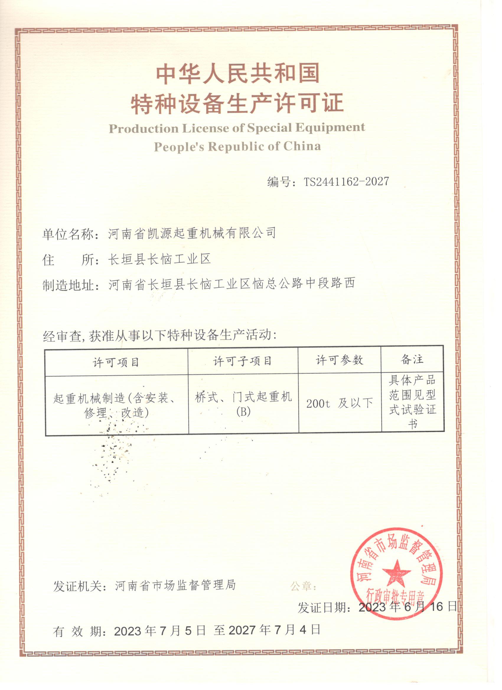特種設(shè)備生產(chǎn)許可證