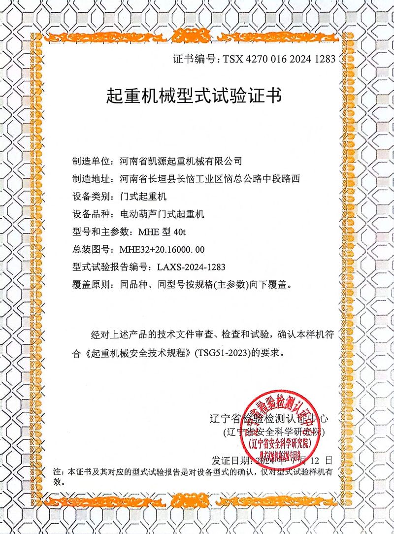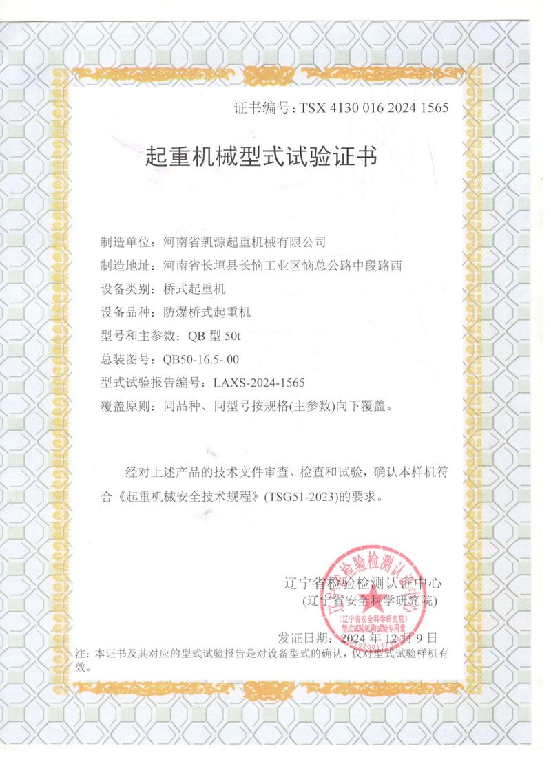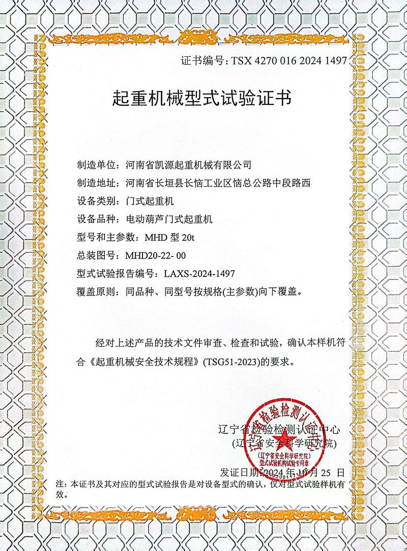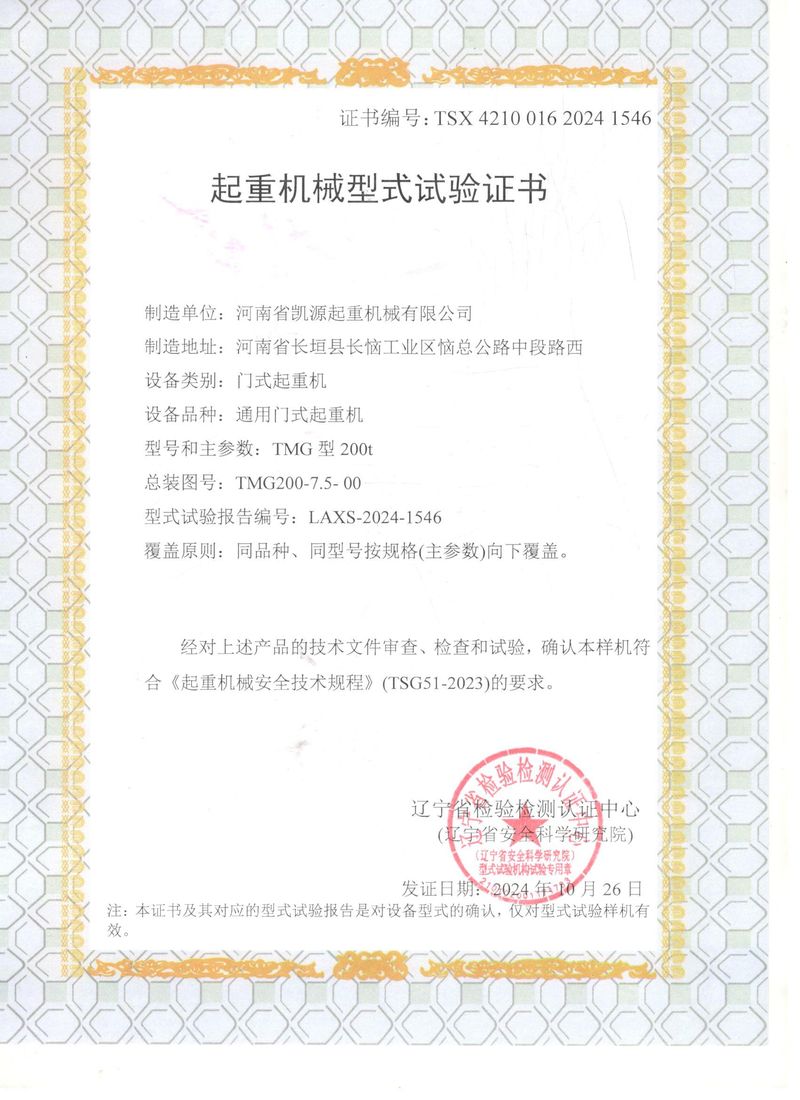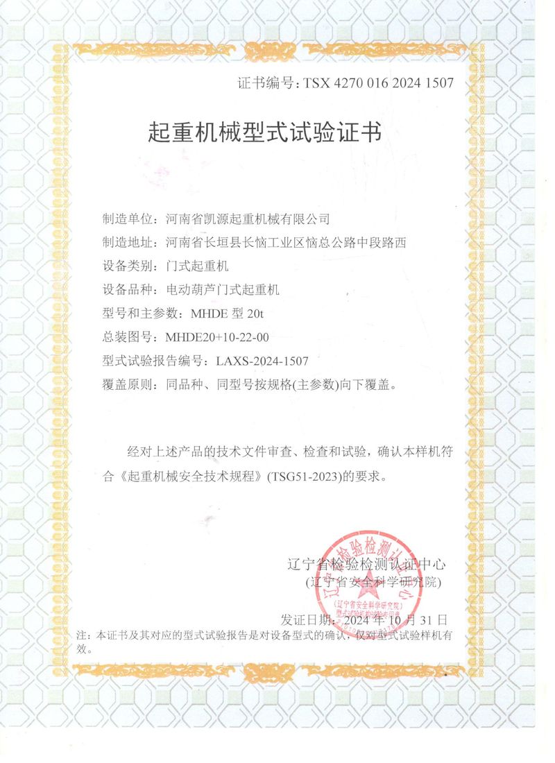 起重機(jī)械型式試驗(yàn)證書
